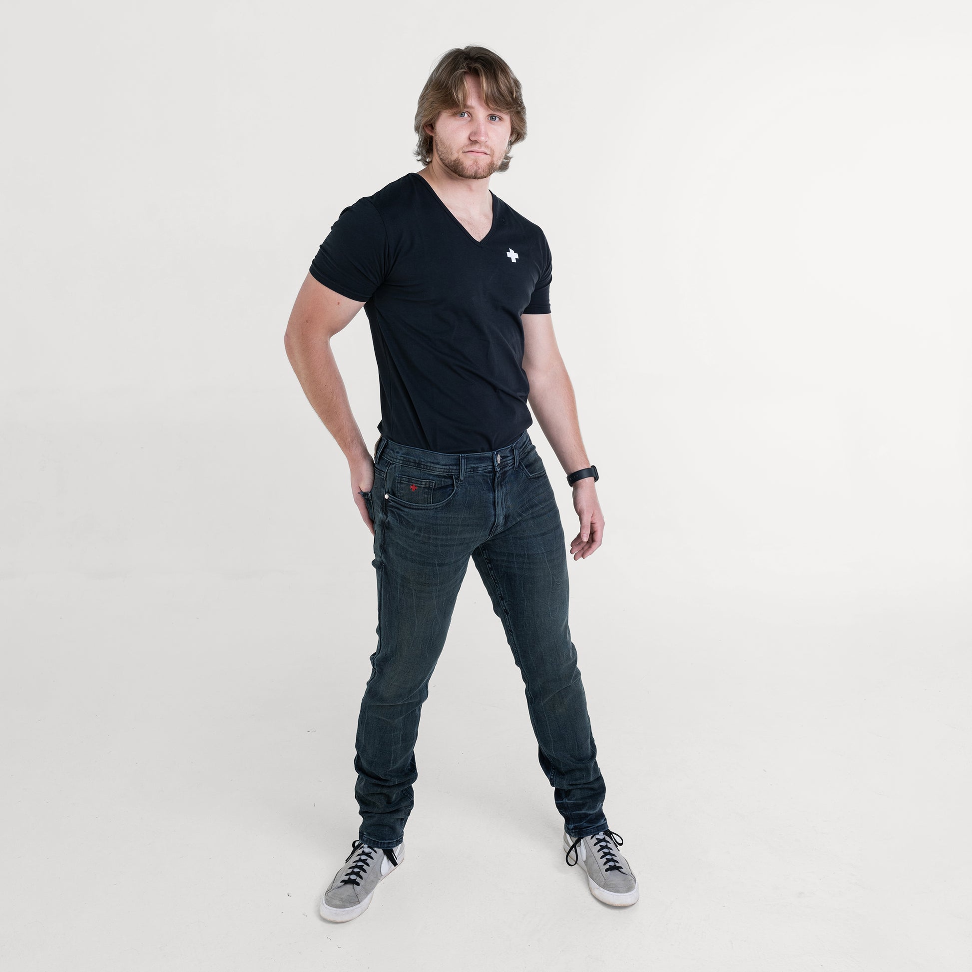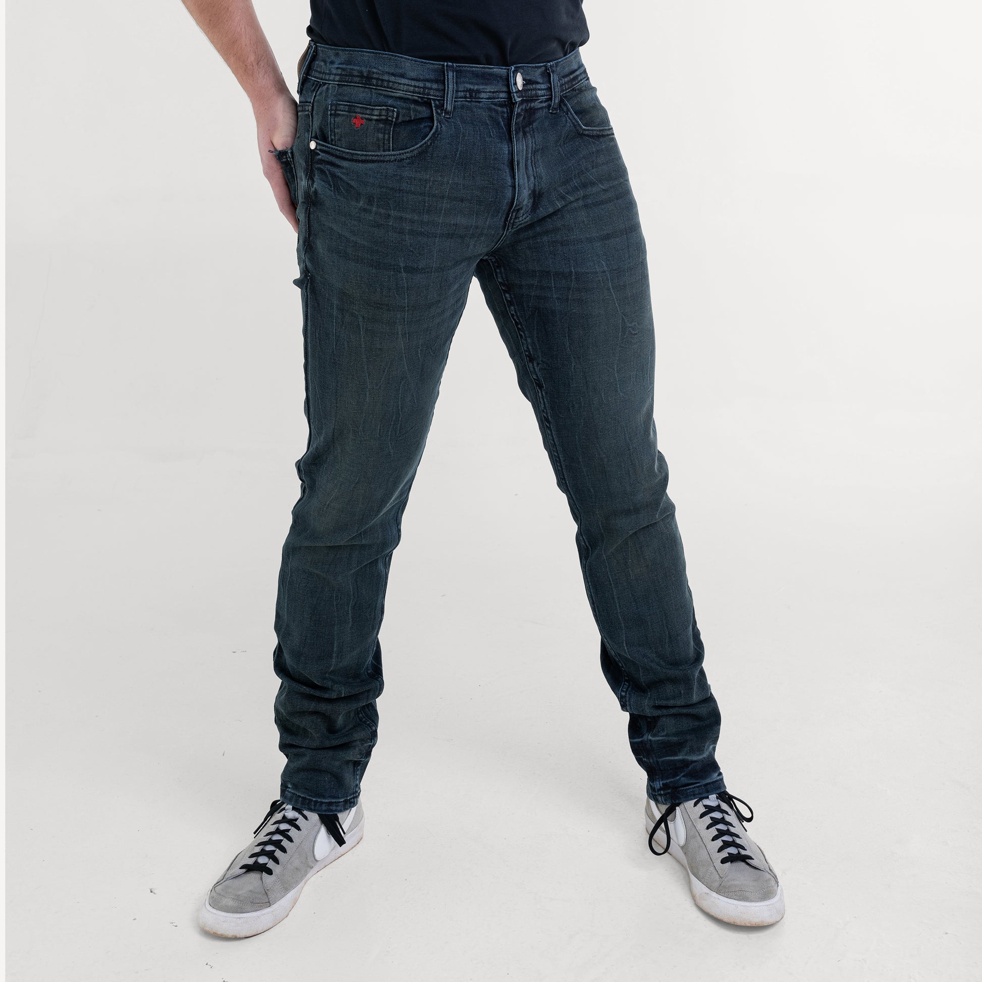 A dark wash denim that oozes attitude and style. Crafted with the finest denim fabric, these jeans are designed to be bold, daring, and to push boundaries. The dark wash gives them an edge of mystery and edginess, while the slim fit creates a sleek modern silhouette. Create your own path with these jeans.